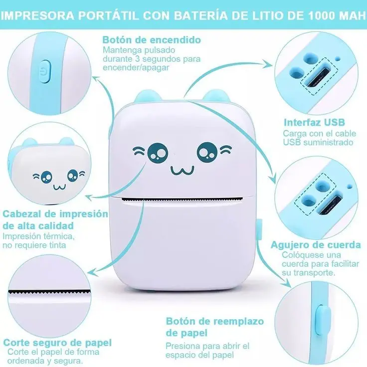 Esta mini impresora es perfecta para imprimir apuntes, listas, recordatorios, etiquetas y hasta stickers. Es un aliado increíble para estudiantes, organización personal o simplemente para dejar volar tu creatividad. También es ideal para journaling, scrapbooking o decorar tus cosas con un toque único.